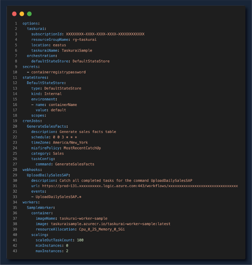 Taskurai allows developers to define their infrastructure using YAML files. This Infrastructure as Code (IaC) methodology ensures clarity and consistency, providing a clear blueprint for your background task processing environment.