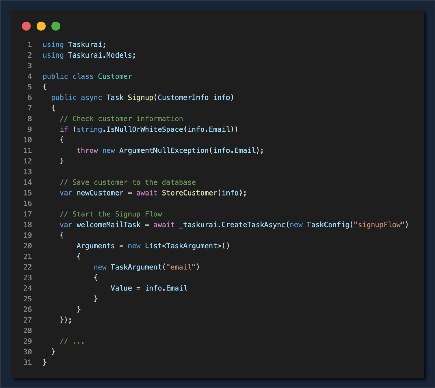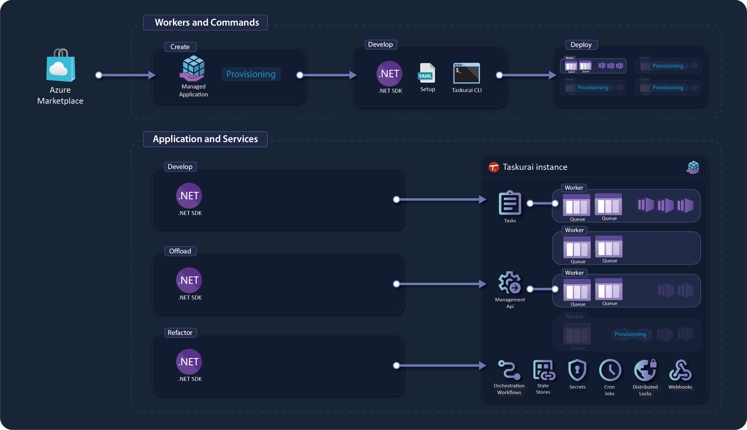 Taskurai's .NET SDK empowers developers to create robust and resilient workers and commands. Leveraging the features of the SDK, developers can build scalable and responsive solutions tailored to the unique needs of their applications.
